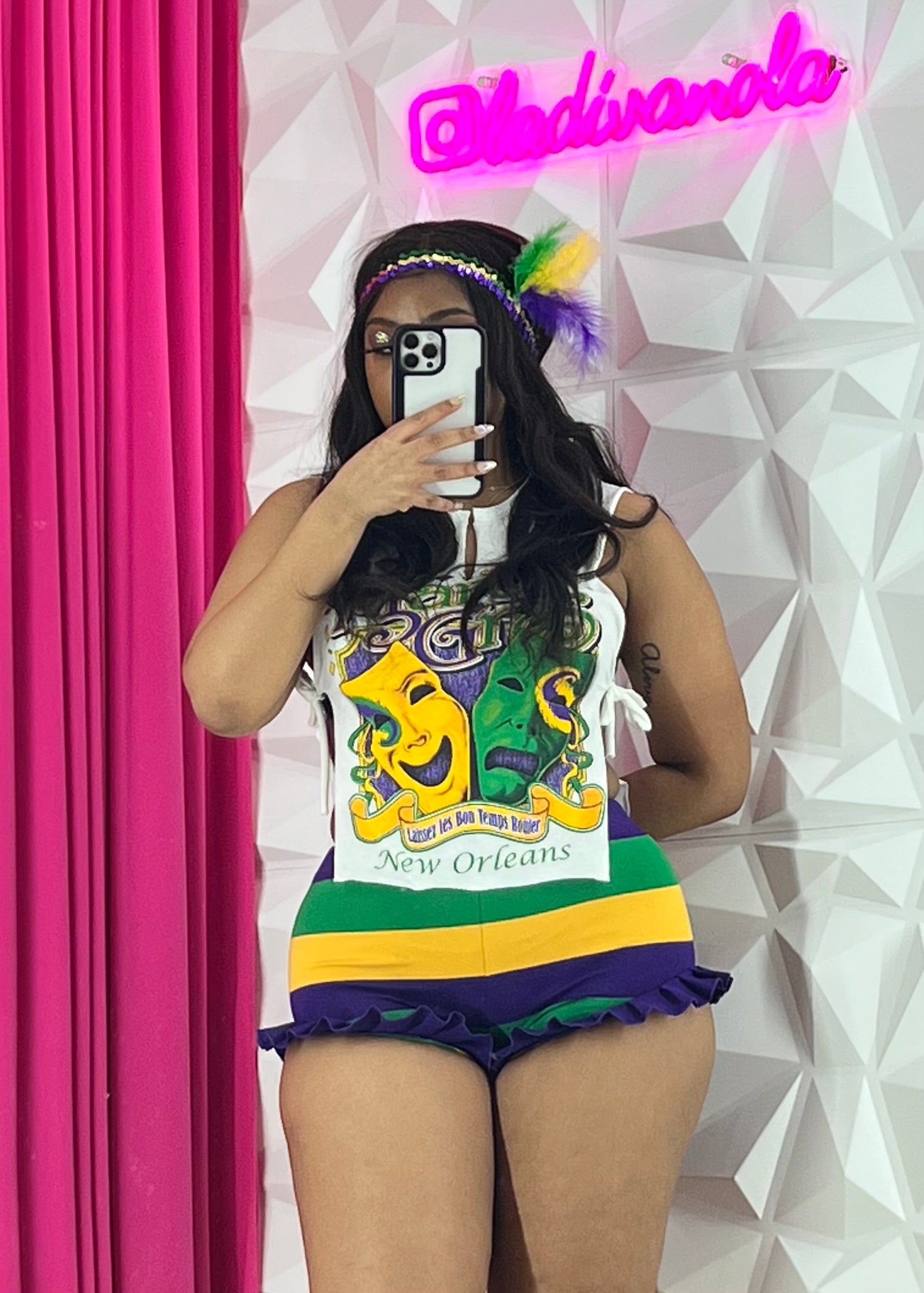 Mardi Gras White Tie Top