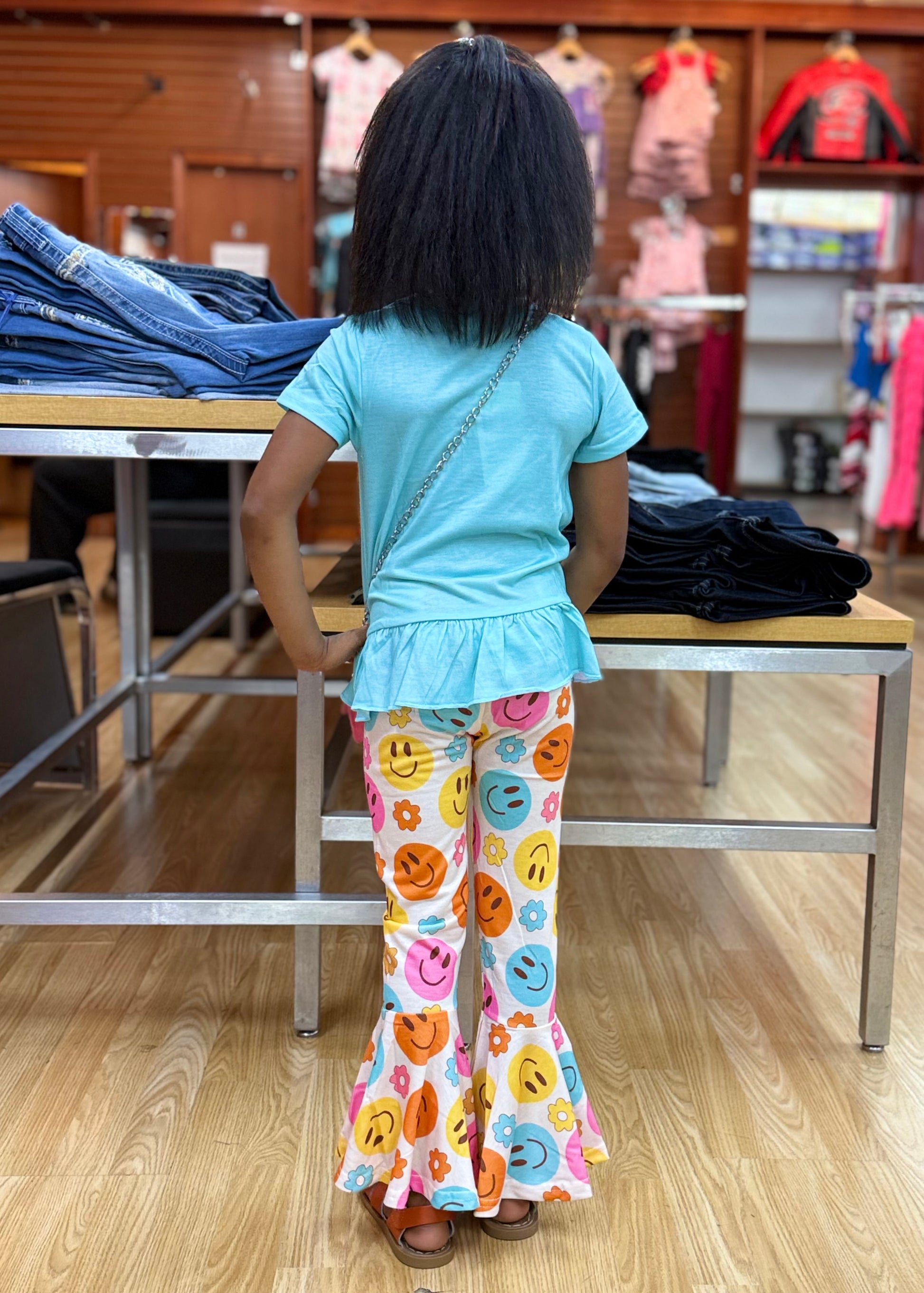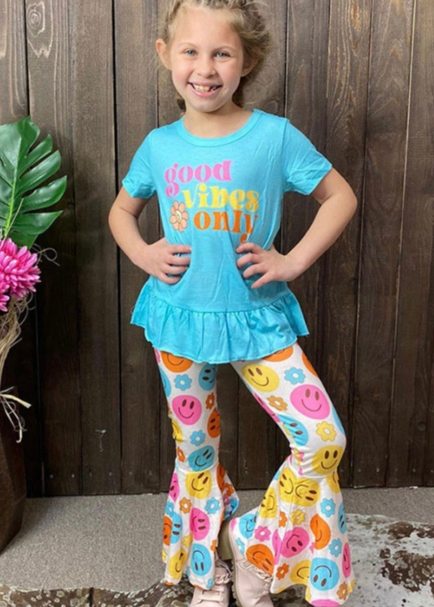 Smile face printed bell bottom match top as a set.